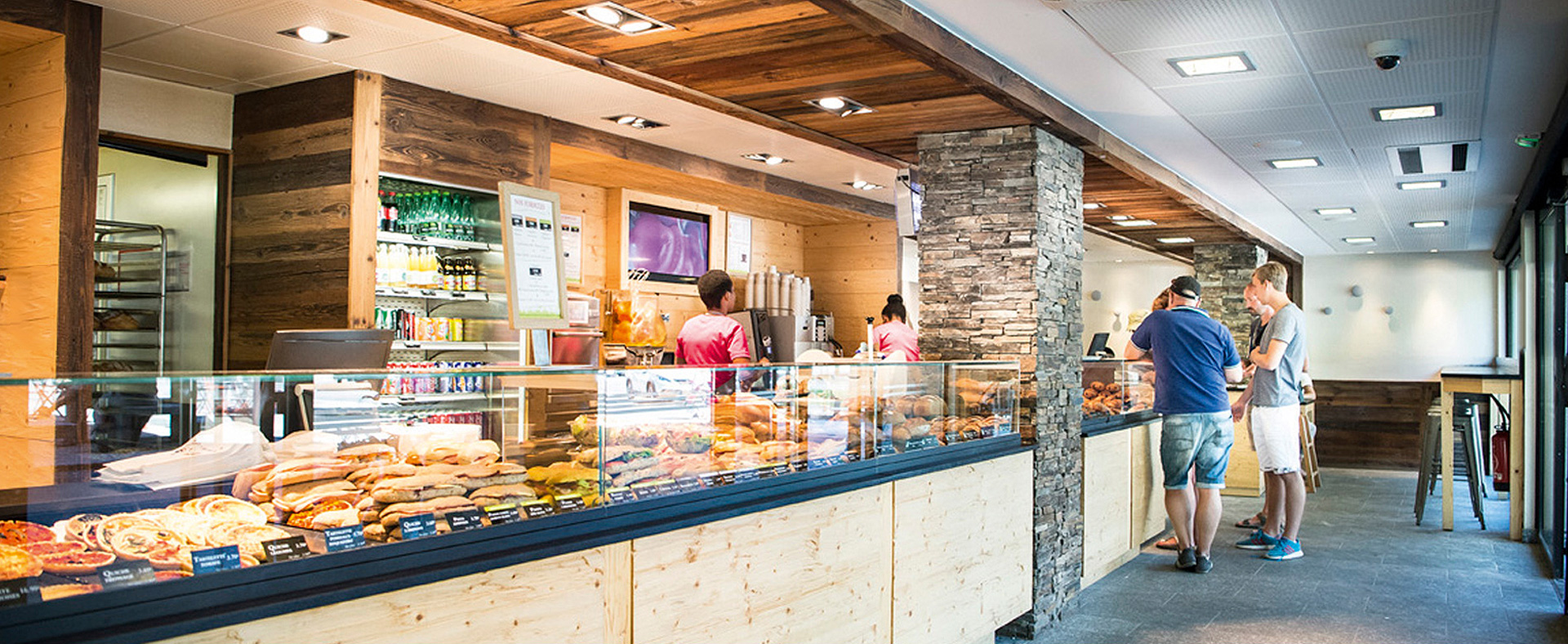 Pour que nos clients éprouvent encore plus de plaisir à venir dans nos magasins, nous accordons un effort tout particulier à leur architecture et à leur décoration. Nous les équipons d’écrans pour diffuser des informations sur nos formules, nos services, les matières premières utilisées…